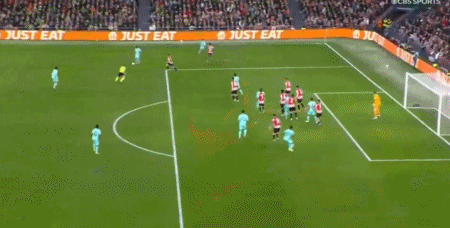 第72分钟,路易斯-苏亚雷斯禁区后点推射破门,随后裁判示意越位在先。