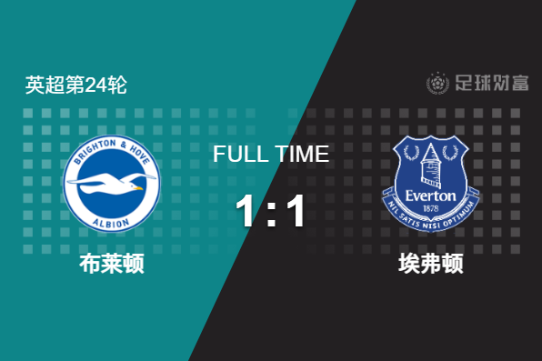 最终全场比赛结束,布莱顿主场1-1战平埃弗顿。
