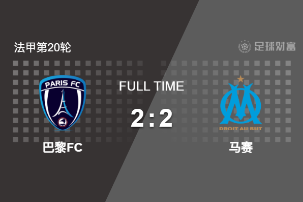 最终全场比赛结束,巴黎FC主场2-2逼平马赛。