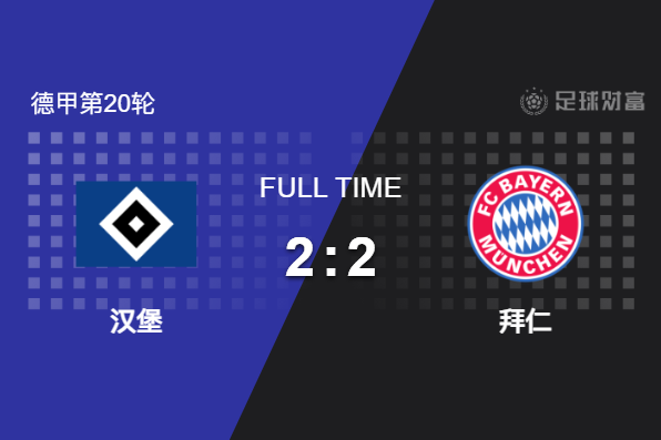 最终全场比赛结束,汉堡主场2-2战平拜仁。