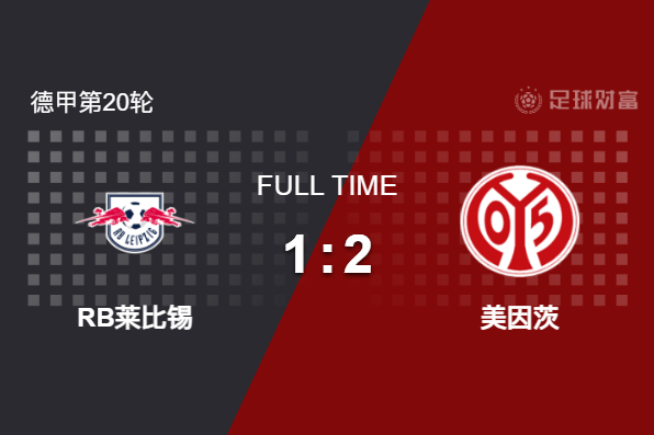 最终全场比赛结束,RB莱比锡主场1-2不敌美因茨。
