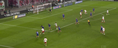 第40分钟,努萨左路突破传中,康拉德-哈德头球破门,莱比锡1-0。