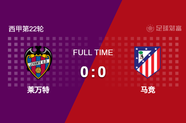 最终全场比赛结束,莱万特主场0-0逼平马竞。