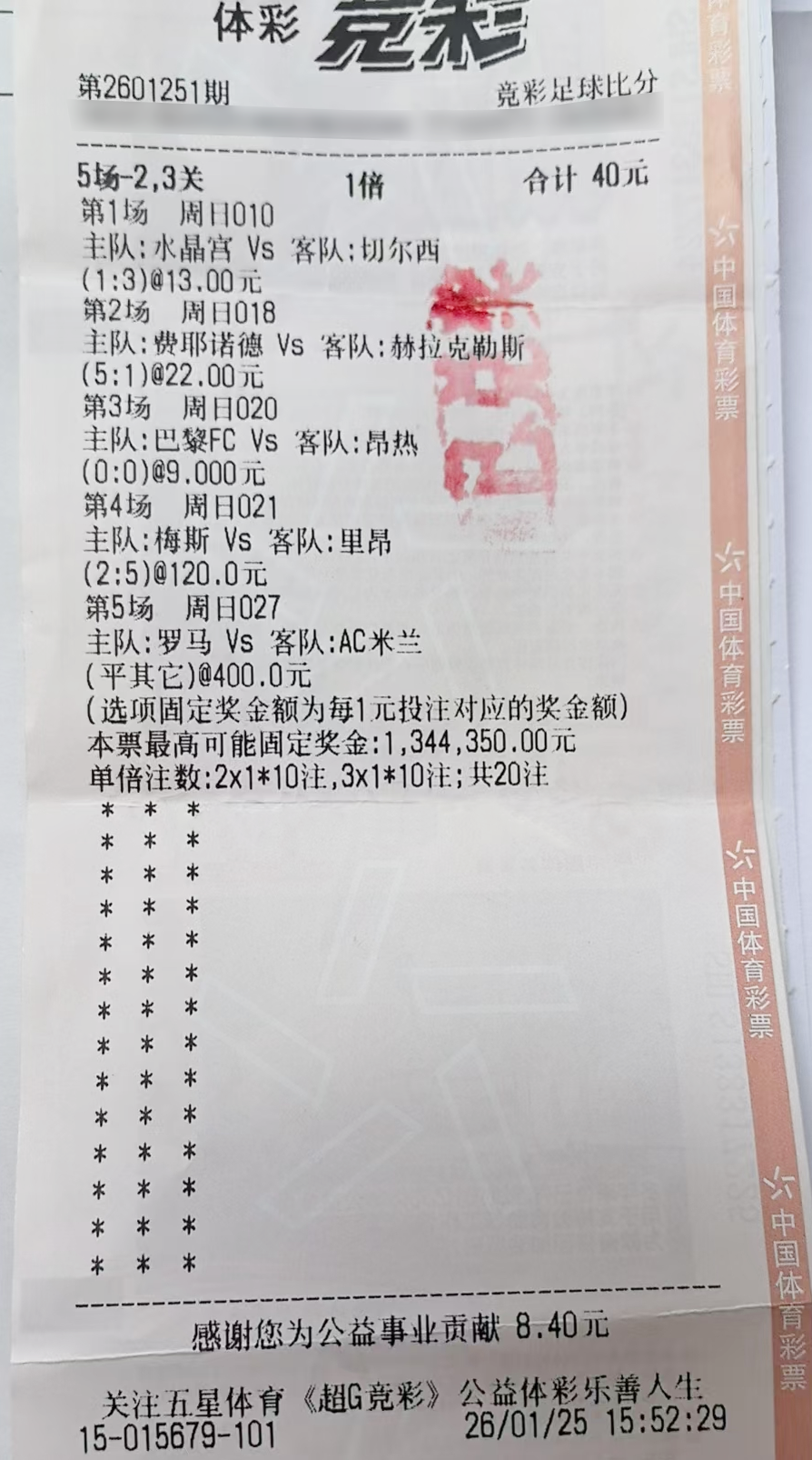 💥神单!比分过关5中3,40元命中五位数大奖!