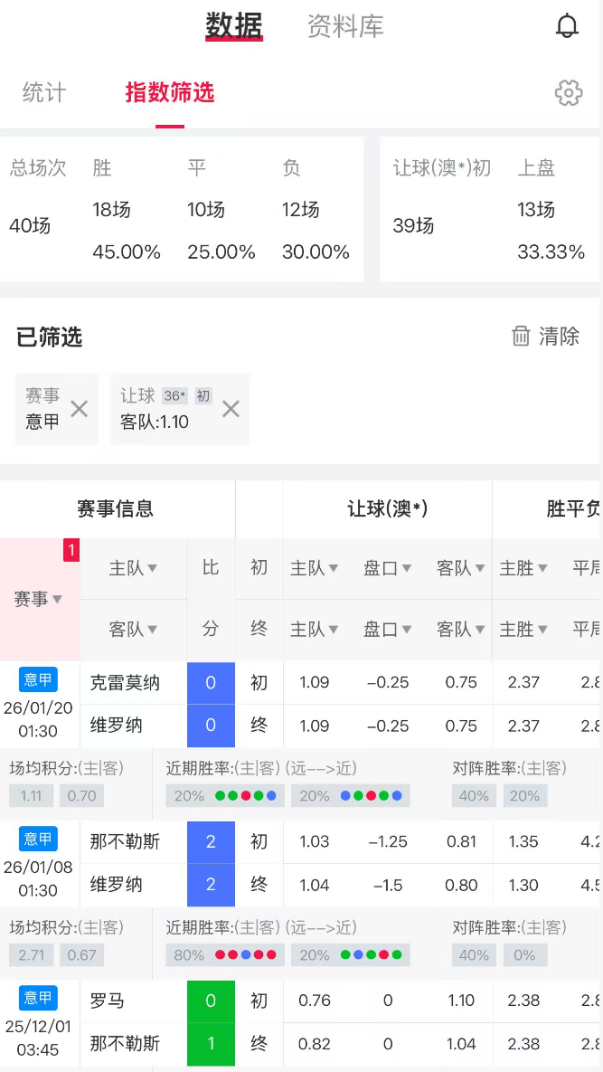 通过数据筛选我们可以发现这个初盘指数初指搭配本场水位的情况下,主队不败易如反掌,主队方向是我们关注的重点。
