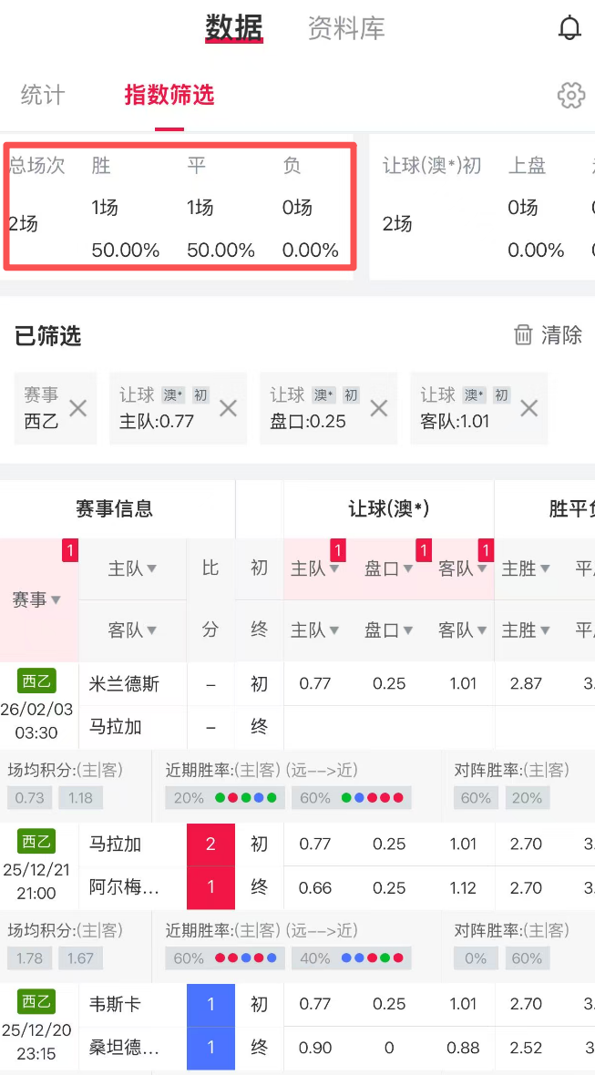 其次,这是一个简单的工具。只需要你选择相同的指数,相同的赔率,进行筛选就行,简单的你想象不到。