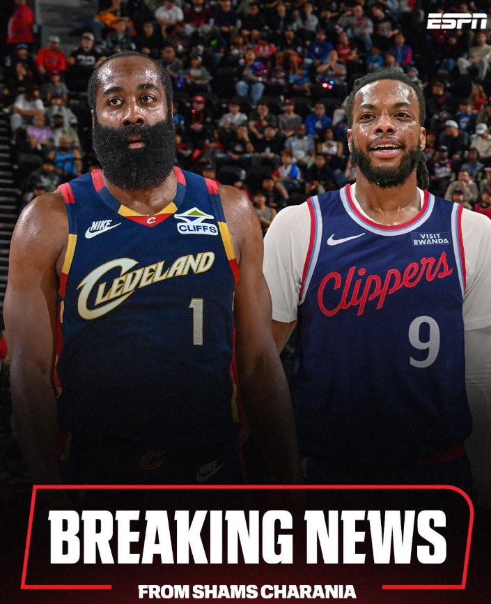 哈登加盟骑士后,将与多诺万·米切尔组成后场双核,立刻向总冠军发起竞争。