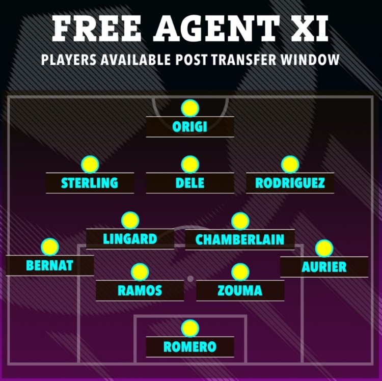 欧洲五大联赛冬窗正式关闭,英媒《太阳报》 评选发布当前市场上可自由签约球员的最佳阵容,包括前皇马队长拉莫斯、前曼联球星林加德,哥伦比亚球星J罗、前利物浦球星奥里吉、张伯伦等。名单上的其他球员,如祖马、斯特林、罗梅罗、阿里等,也都有着丰富的英超和其他欧洲主流联赛的征战经验。