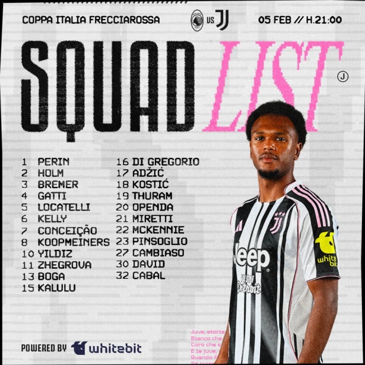 北京时间2月6日凌晨4点,尤文图斯将在意大利杯1/4决赛客场挑战亚特兰大,赛前尤文公布本场比赛大名单。