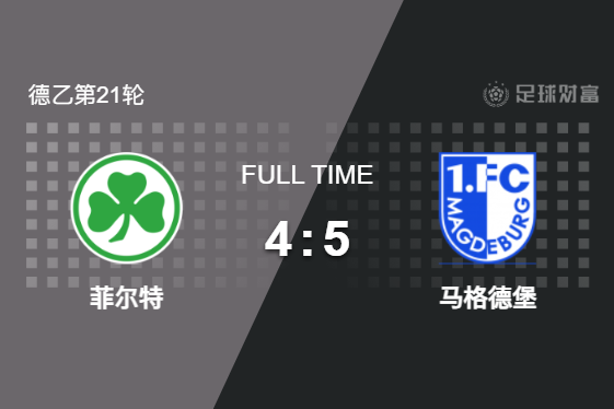 最终全场比赛结束,马格德堡客场5-4战胜菲尔特。