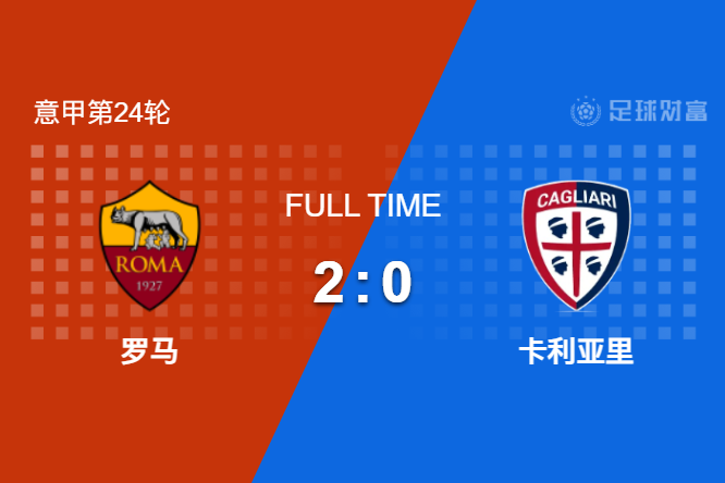 最终全场比赛结束,罗马主场2-0轻取卡利亚里。