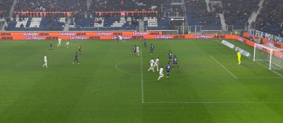 第25分钟,帕萨利奇送出直传,扎帕科斯塔扣过防守球员后左脚低射入网,亚特兰大2-0。