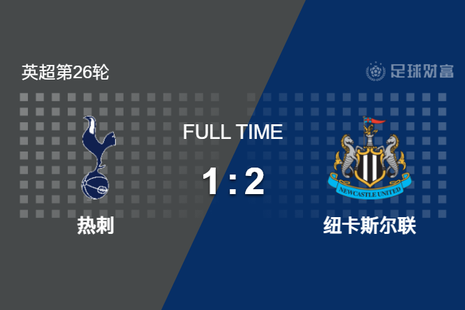 最终全场比赛结束,热刺主场1-2不敌纽卡斯尔。