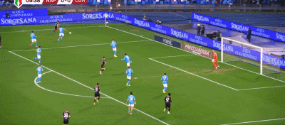 第46分钟,霍伊伦送出妙传,韦尔加拉单刀球冷静推射入网,那不勒斯1-1。
