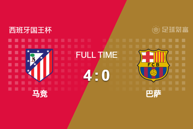 最终全场比赛结束,马竞主场4-0大胜巴塞罗那。