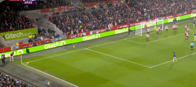 第71分钟,经典手榴弹战术!范登贝尔赫禁区前点头球后蹭,刘易斯-波特门前接力冲顶破门,布伦特福德1-1扳平。