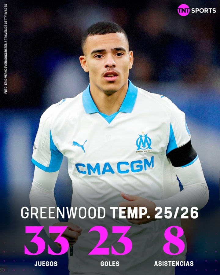 效力曼联期间,格林伍德129场贡献35球12助攻,2024年7月加盟马赛至今,各项赛事69次出场已经斩获45球14助攻。