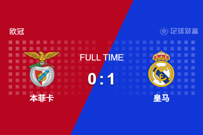 最终全场比赛结束,皇马客场1-0战胜本菲卡。