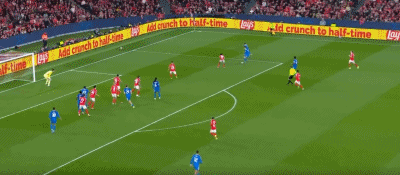 第39分钟,阿诺德右路插上横传门前,姆巴佩铲射慢了半拍。