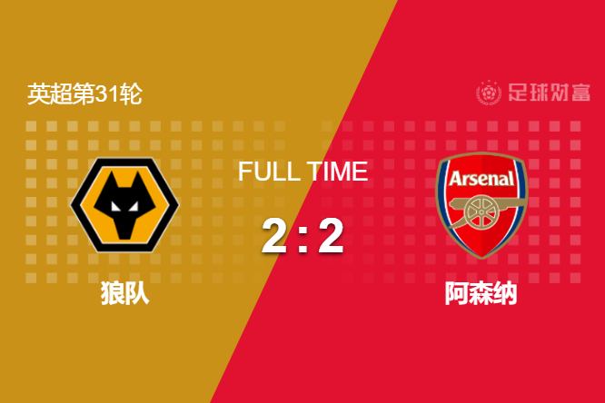 最终全场比赛结束,狼队主场2-2绝平阿森纳!