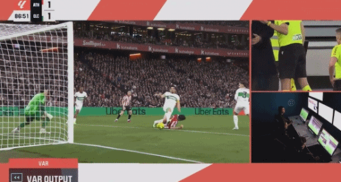 第89分钟,毕尔巴鄂完成绝杀!拉波尔特禁区内头球抢点与对手撞到一起倒地,主裁判吹罚点球,古鲁塔泽主罚命中梅开二度,2-1!!!