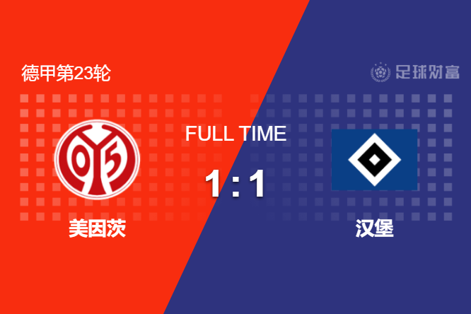 最终全场比赛结束,美因茨主场1-1战平汉堡。