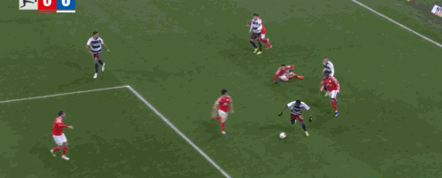 第45分钟,美因茨取得领先!达科斯塔右路传中,阿米里禁区内扫射打进左下角,1-0!!