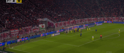 第39分钟,劳姆左路低平球传中,鲍姆加特纳推射梅开二度,莱比锡2-0。