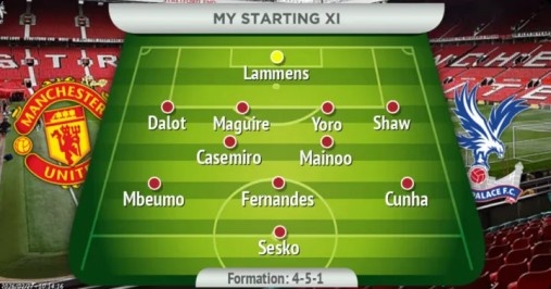 北京时间3月1日晚22点,曼联将在英超联赛第28轮主场面对水晶宫,赛前《曼市晚报》预测了红魔首发阵容。