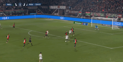 第20分钟,丹尼斯-曼内切低射将比分反超,埃因霍温2-1。