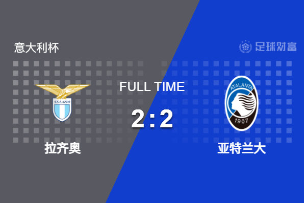 最终全场比赛结束,拉齐奥主场2-2战平亚特兰大。