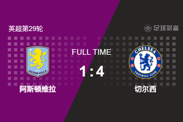 最终全场比赛结束,切尔西客场4-1逆转维拉。