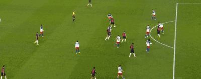 第45+2分钟,泰里耶禁区中路头球高出横梁。