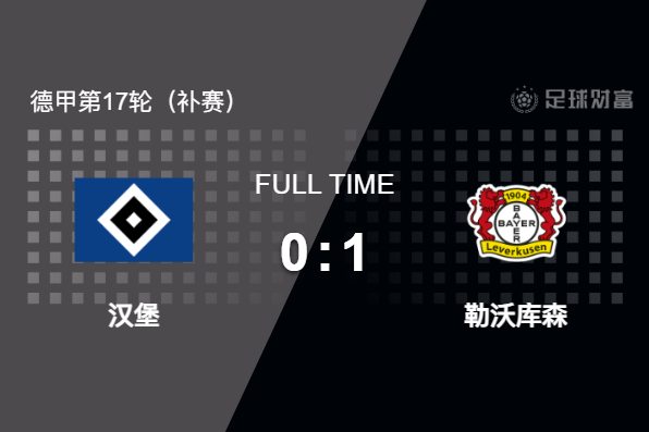 最终全场比赛结束,汉堡主场0-1惜败勒沃库森。
