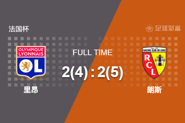 最终全场比赛结束,里昂主场2-2战平朗斯,点球大战4-5被淘汰出局。