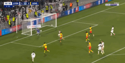 第90+4分钟,朗斯门将里塞出击失误,托利索助攻18岁小将安贝尔吊入空门,里昂2-2绝平。