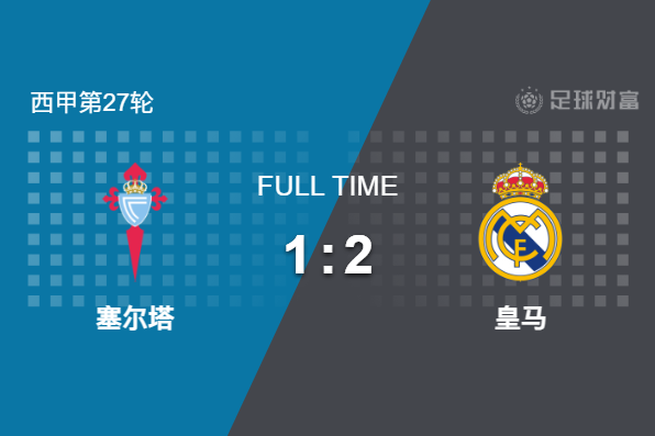 最终全场比赛结束,皇马客场2-1险胜塞尔塔。