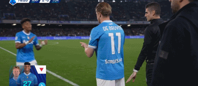 第79分钟,德布劳内时隔四个月伤愈复出,那不勒斯看台球迷掌声雷动。