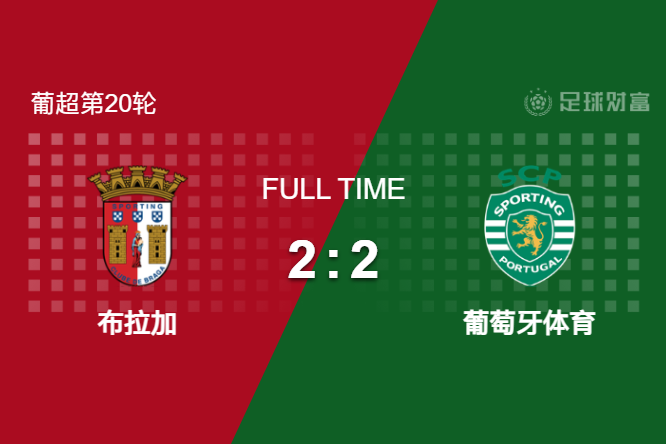 最终全场比赛结束,布拉加主场2-2战平葡萄牙体育。