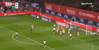 第22分钟,贡萨洛-伊纳西奥角球机会头球破门,葡体1-0。