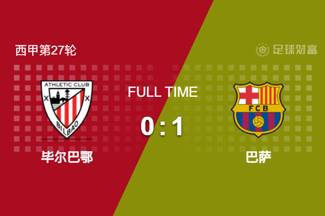 最终全场比赛结束,巴萨客场1-0险胜毕尔巴鄂。