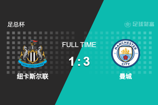 最终全场比赛结束,曼城客场3-1逆转纽卡斯尔联。
