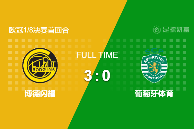最终全场比赛结束,博德闪耀主场3-0大胜葡萄牙体育。