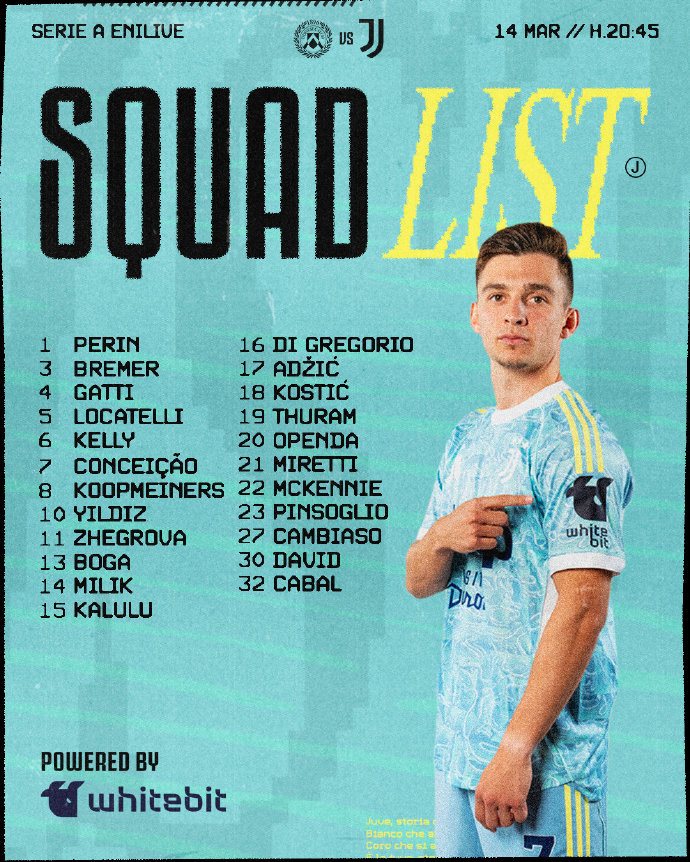 尤文vs乌迪内斯官方大名单: