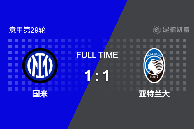 最终全场比赛结束,国米1-1战平亚特兰大。