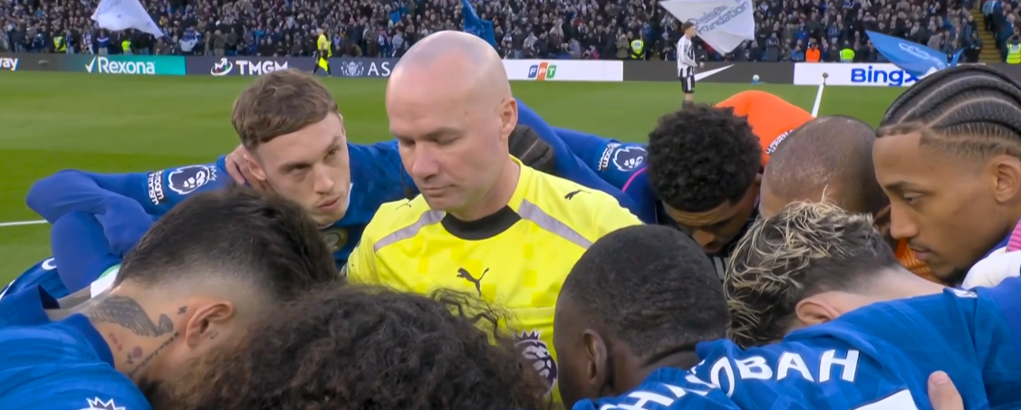 赛前发生了非常搞笑一幕,切尔西球员按照惯例在比赛开始前围成一圈进行简单的动员,然而他们将主裁判保罗-蒂尔尼围在了里面,主裁判蒂尔尼显然也有点不知所措,面对直播镜头有些尴尬。
