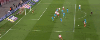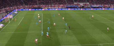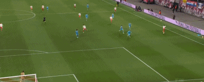 第31分钟,格鲁达送出长传,鲍姆加特纳胸部停球抽射入网,莱比锡3-0。