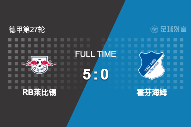 最终全场比赛结束,莱比锡主场5-0大胜霍芬海姆。
