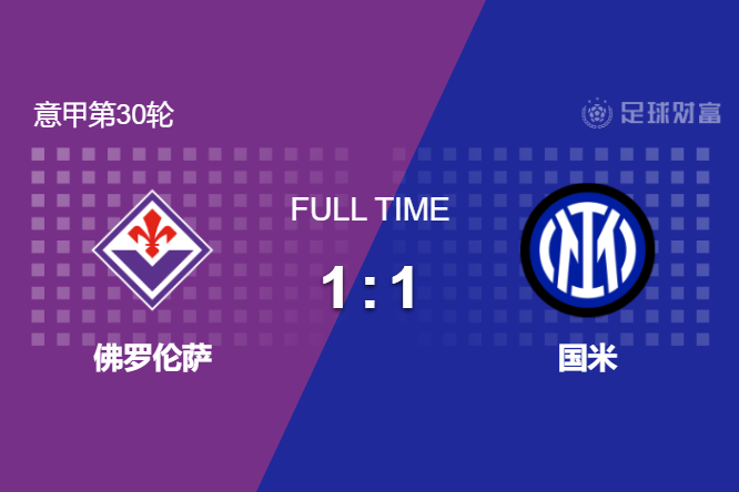 最终全场比赛结束,国米1-1战平佛罗伦萨,积分榜上领先米兰6分继续领跑。