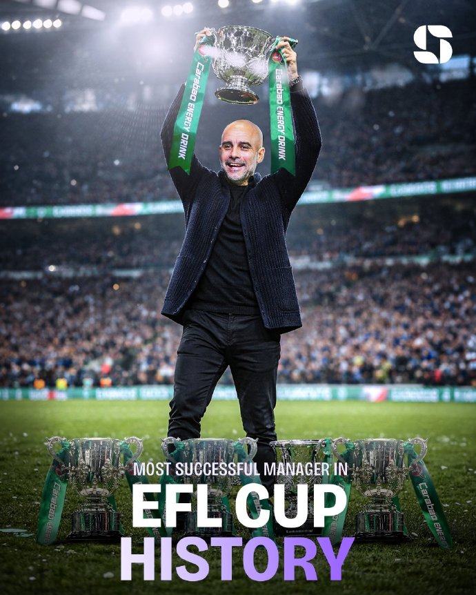 英联杯决赛,曼城凭借奥赖利的两粒进球,2-0完胜阿森纳夺冠,瓜迪奥拉赢得教练生涯第40座冠军奖杯。